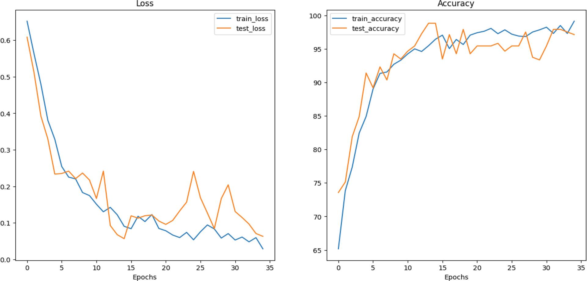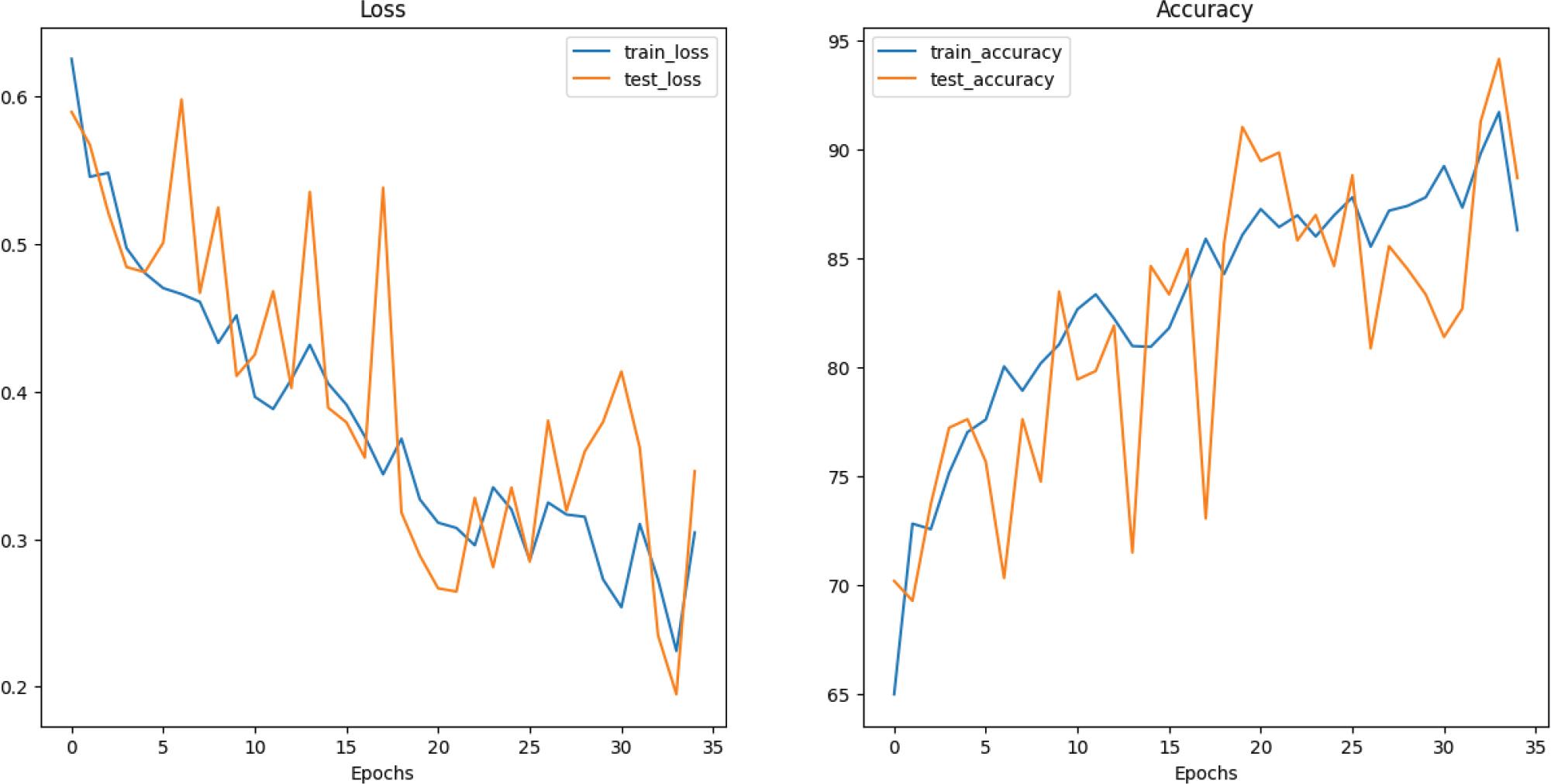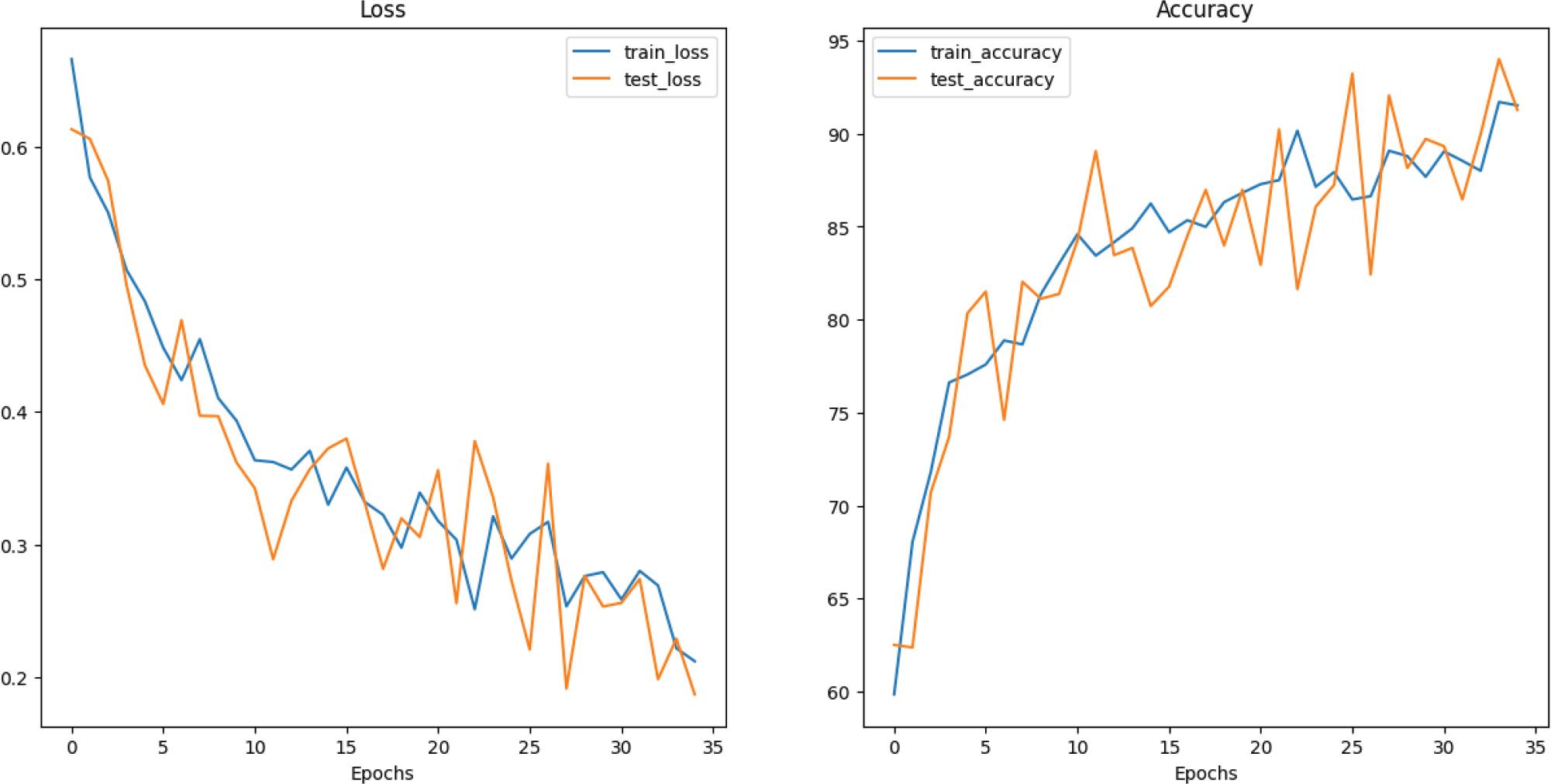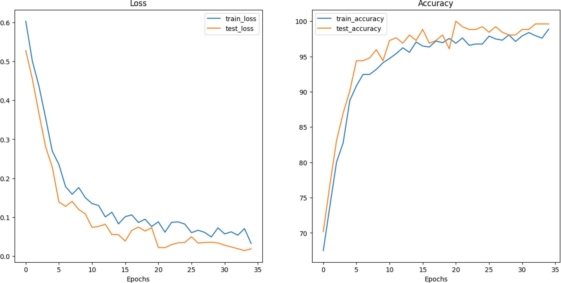 For conducting the experiments, a computational setup consisting of an Intel Core i9 processor and an NVIDIA GeForce RTX GPU was utilized. The experiments were executed within the VS Code Jupyter Note-book interface leveraging the PyTorch framework for model implementation. The training process spanned over 35 epochs and took approximately 28 minutes to complete on the aforementioned hardware configuration. The architecture of the proposed methodology is shown in Figure 4.
