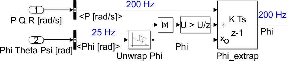 Roll angle extrapolation block scheme (signal frequencies denoted in blue font)