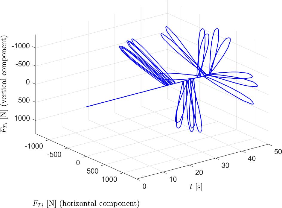 The forces generated by the lateral motors in the aeroballistic frame attached to the platform center of mass are presented in Figure 9. It can be observed that 21 lateral motors were used.