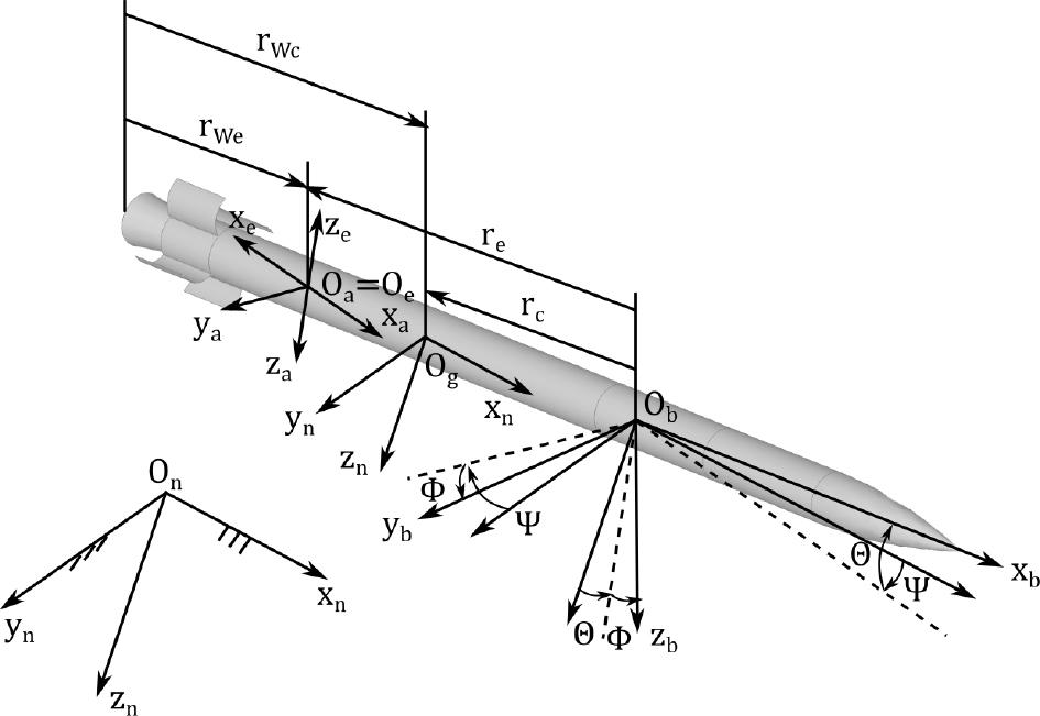 The nonlinear dynamic equations of motion of the projectile are as follows: