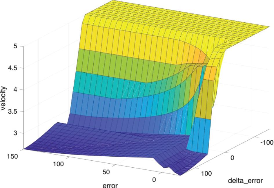In Figure 10, we illustrate the nonlinear surface of the fuzzy PD controller for the z axis.