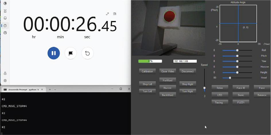 In the first case, we performed 30 tests with a distance of80 cm and the objective positioned in front of the robot, and in all cases, the robot reached the objective with an average time of 24.2056 seconds. It is worth mentioning that this controller (by default) gives priority to the distance to the objective before centering the objective on the x axis.