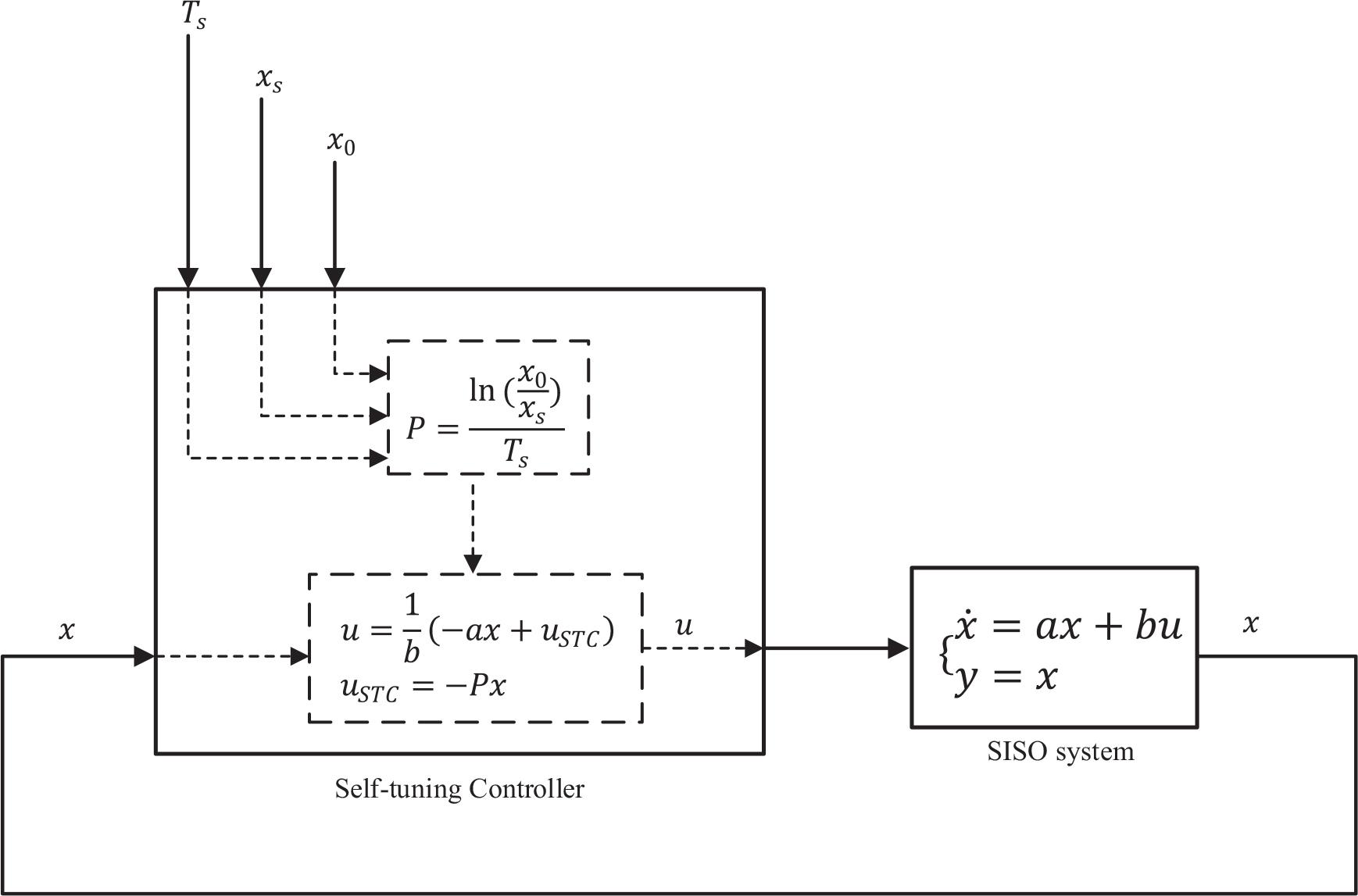 To prove the fact that the self-tuning controller guarantees that the chosen settling point will be reached at the predefined settling time, we can solve the system’s differential equation as follows: