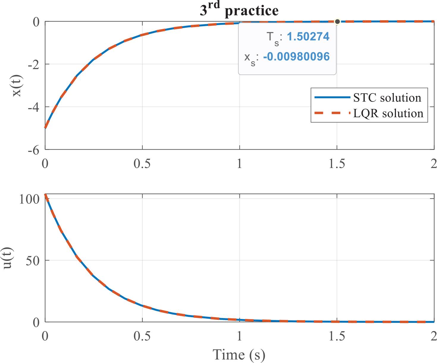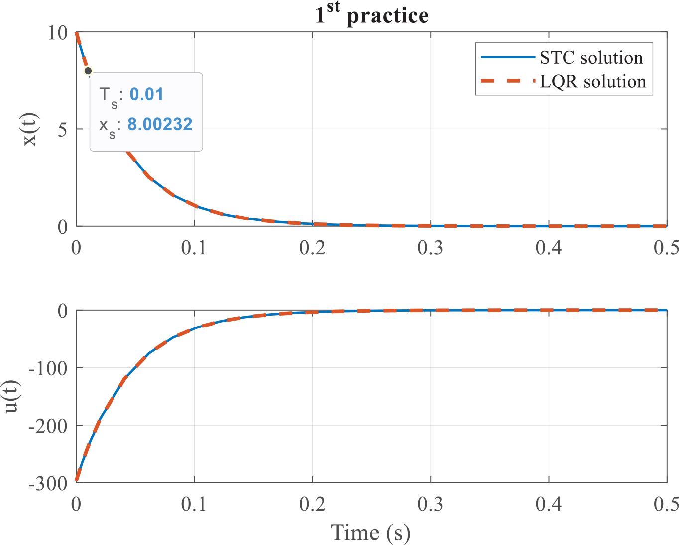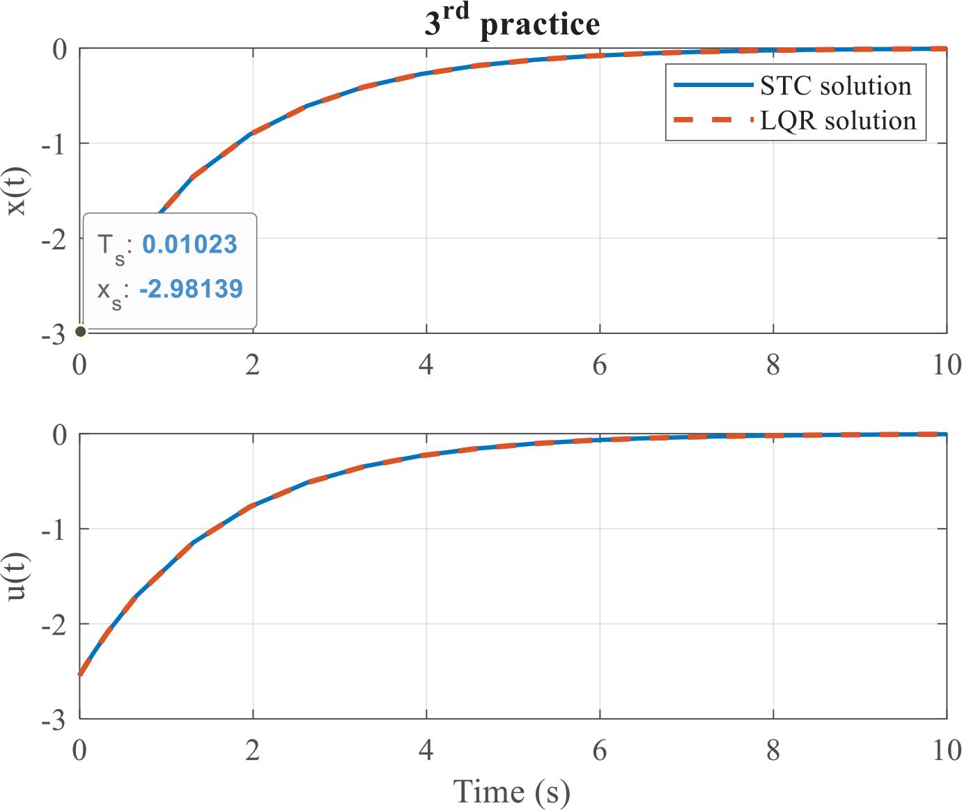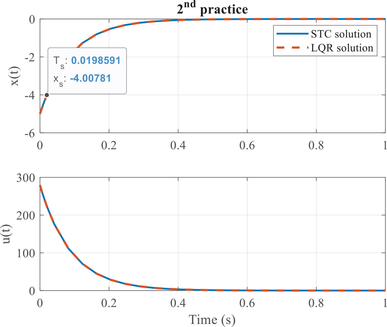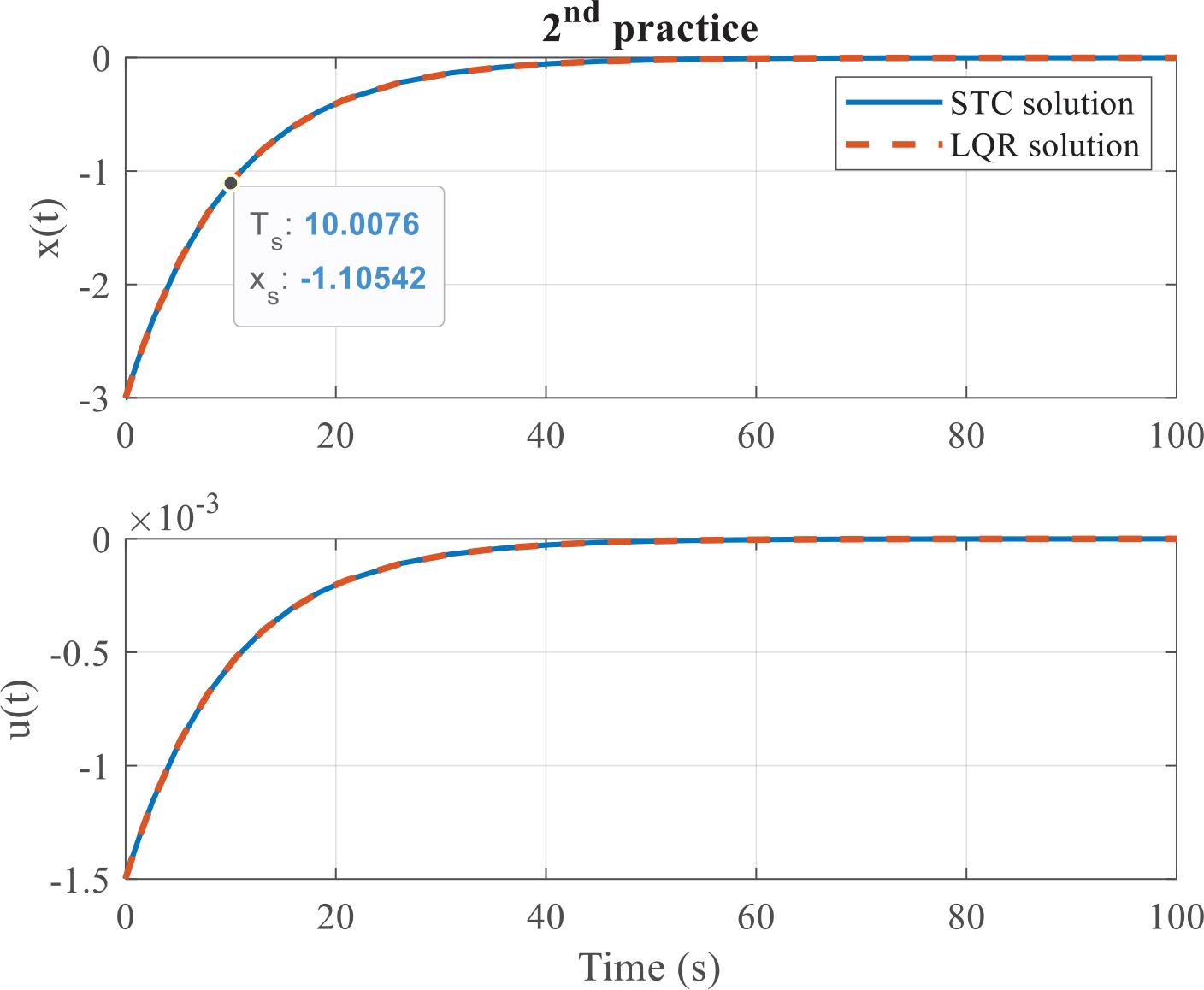 For all practices, the values of the cost functions for the STC, LQR, and proportional (P) controllers are presented, and the results are compared with those of the LQR and P controllers tuned using the PID block in Simulink/MATLAB. It is expected that the comparison results for the STC and LQR will be the same.