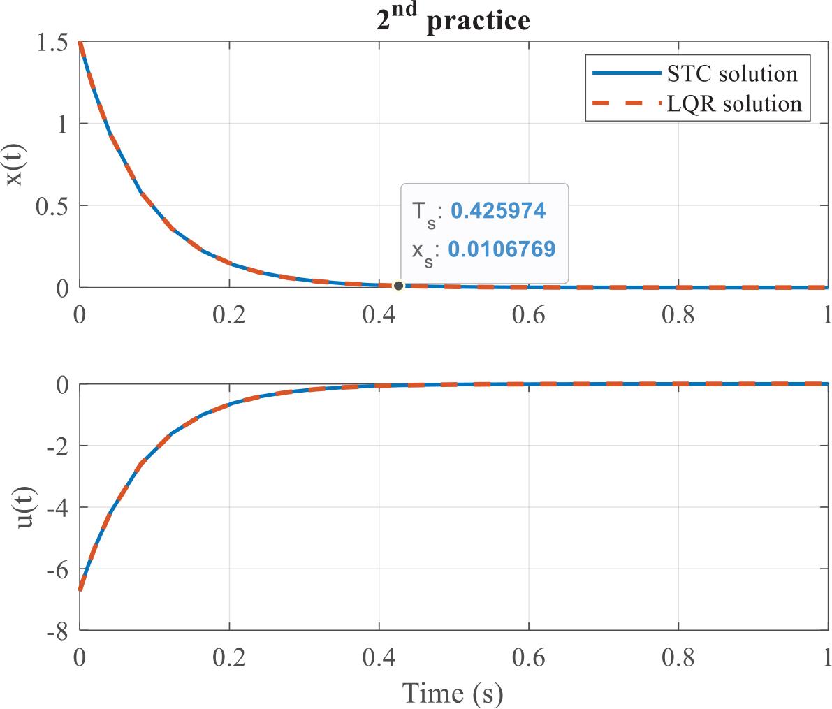 As evident in Equation (18), the system’s state and control signal of the STC method will change exponentially. It is provable that for every STC solution of the SISO linear system, there is an optimal solution with a speci^ied cost function. By the terms of Equation (15), the weight parameters of the speci^ied cost function can be calculated.