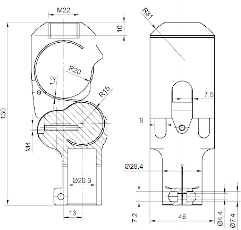 | Primary design | −180 to 180 deg | Manual full extent deformation and release | Joint returns to its primary position, no visible signs of shape alteration, visible signs of structural breaking after repeated tests |