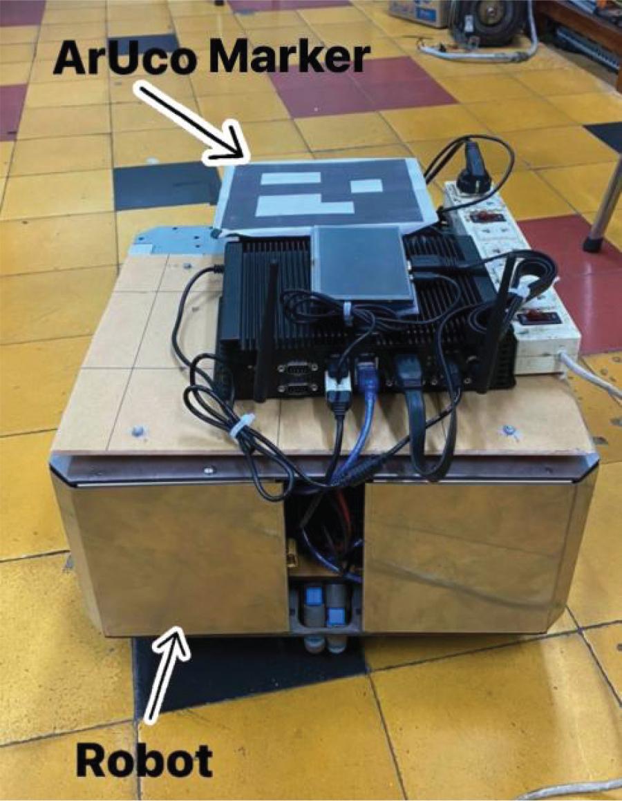 The apparatus of WMR hardware, components and experimental control setup are shown in Fig. 5 to Fig. 7. In this setup, the IP camera is mounted on the top position so that it can cover the robot and its experimental trajectory. The robot position and orientation is detected by the ArUco marker that is placed at midpoint of driving wheels M.