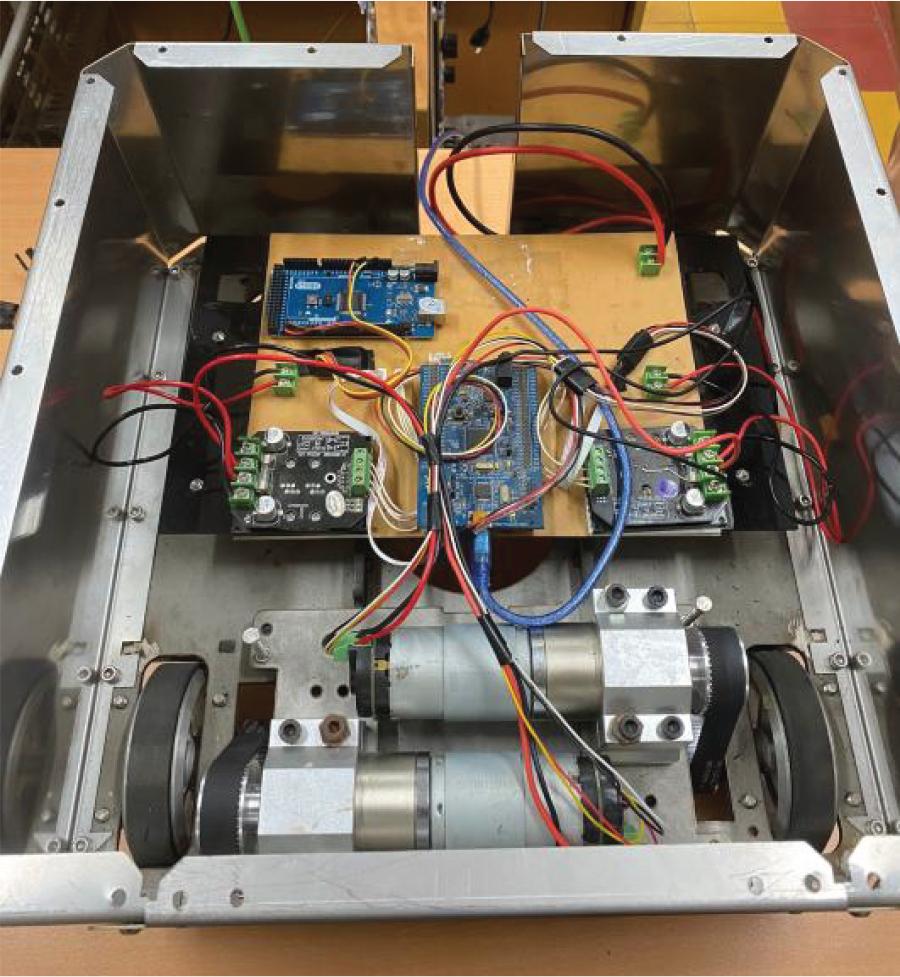 Wheeled Mobile Robot (WMR) refers to robots that navigate on the ground using motorized wheels to propel themselves. Among the branches of mobile robots, WMRs are simpler and more efficient than other designs, such as those that utilize grooves or legged robots. They are easy to design, produce, and program for linear and angular motion on a horizontal plane. This makes the WMRs an active field of research in order to fulfill the needs of surveys, patrols, emergency savings, identification, petrochemicals in automation, building structures, transportation, and healthcare. With numerous features, WMRs are being applied in various fields such as agriculture services and other industries [1–7]. Since then, the requirements for accurately controlling the movement trajectory of mobile robots with wheels have also increased.
