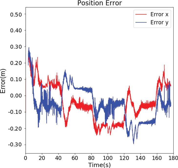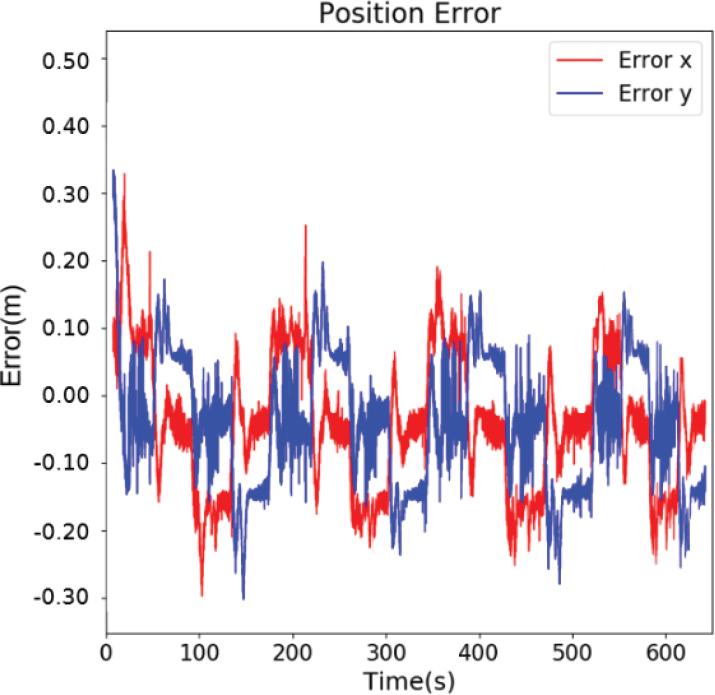 Experimental tracking errors with respect to 4loops square trajectory under 5 kg load