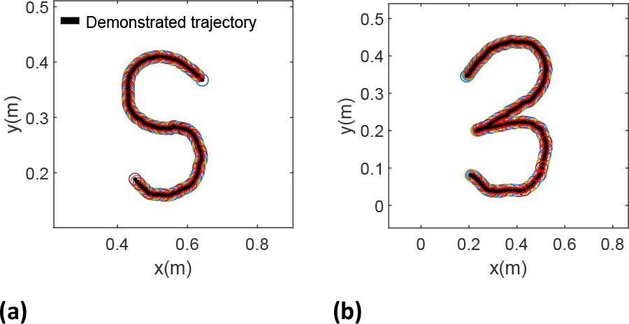 Two distinct demonstrations performed by human subject, depicting variations in movement patterns traced during demonstrations. (a) S-shaped pattern; (b) ’3’-shaped pattern