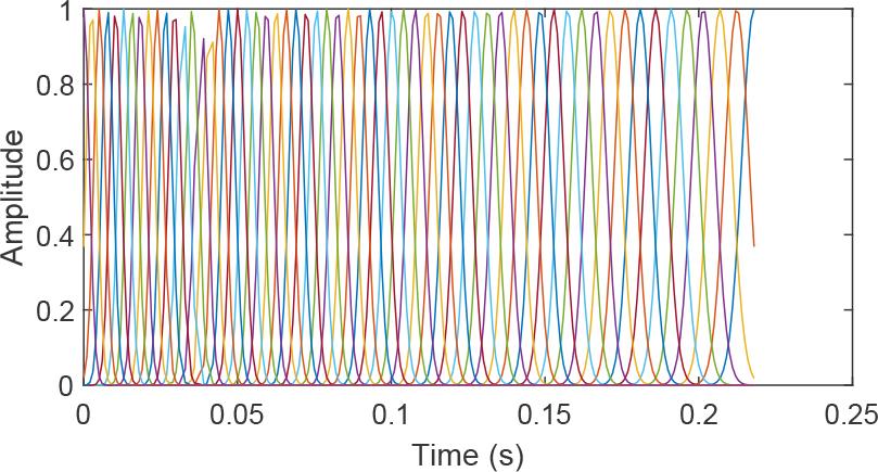 Sixty equally spaced Gaussian distributions illustrating the basis functions used