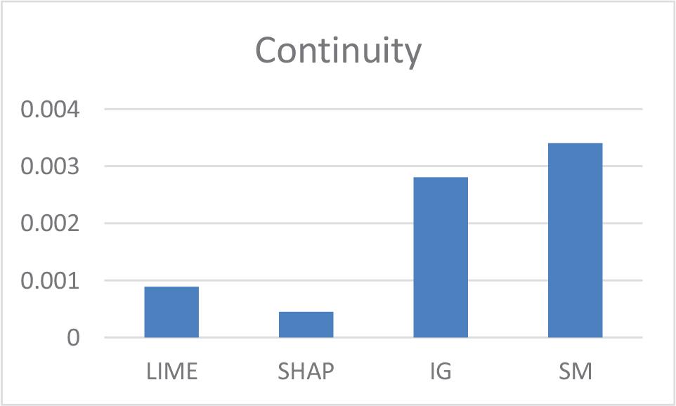 In terms of continuity, SHAP was the method with the least variability in explanations, followed by LIME.