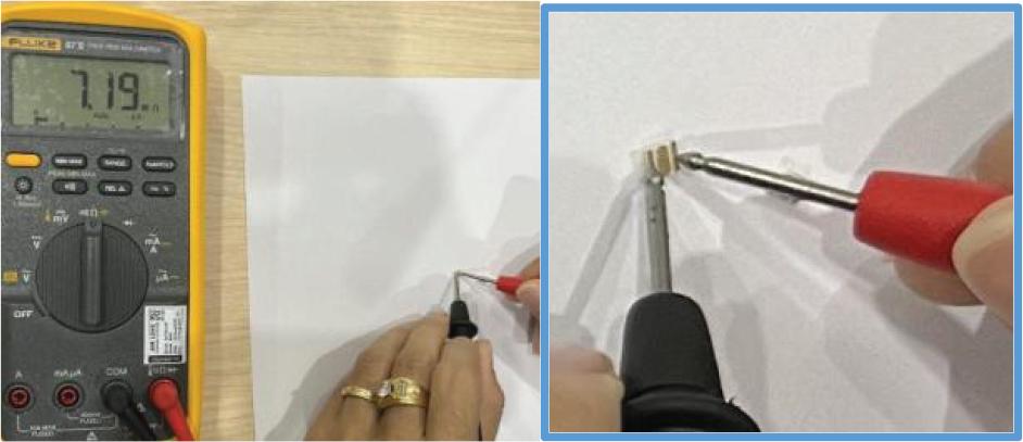 In addition to the X-ray method, manual measurements were performed on both functional and faulty LEDs using a digital multimeter (Fluke 87V). An example of the manual measurement results is presented as follows: The light emitted is bright for functional LEDs, with the forward resistance measuring 37.9 MΩ. In contrast, a damaged LED that does not emit light exhibits a resistance value of only 38.2 Ω. The results are illustrated in Figure. 6.