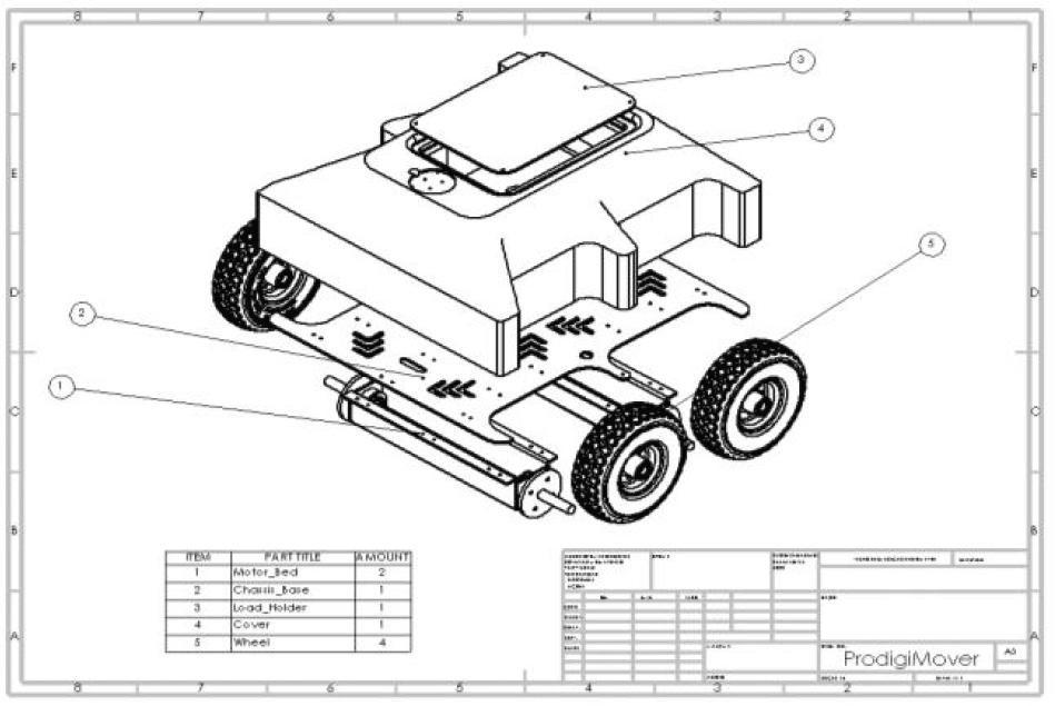 Exploded 3D model of mobile transportation robot