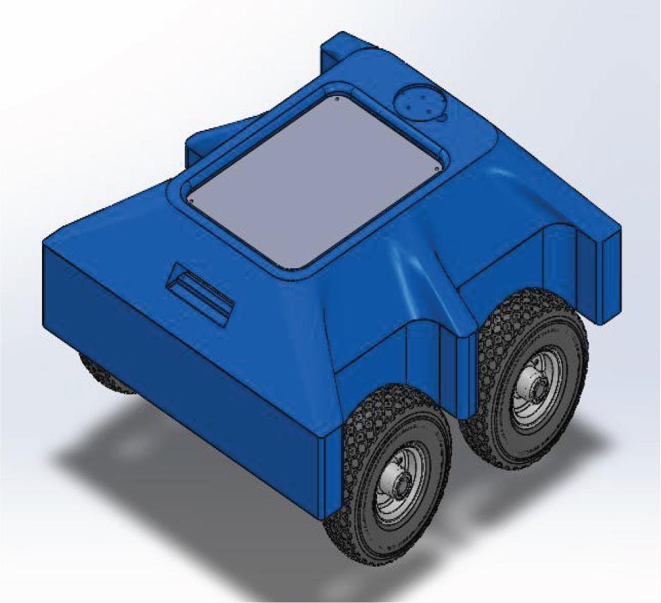To achieve overall design strength and durability, a process known as finite element analysis (FEA) was thoroughly utilized as an essential and invaluable tool to analyze and examine the structural strength of the AMR. Tests included various operational loading conditions to which the robot would inevitably be subjected in its real-world applications and operations. Through the help of FEA, the chassis was designed to be strong enough to carry changing loads and be light in weight, using aluminum 5754-O sheet metal to achieve the optimal strength-to-weight ratio for the best performance and consequently maximum mobility and energy efficiency. Fig. 1 displays the chassis of the AMR, establishing the layout of load-carrying segments and motor bedding necessary for stable functionality.