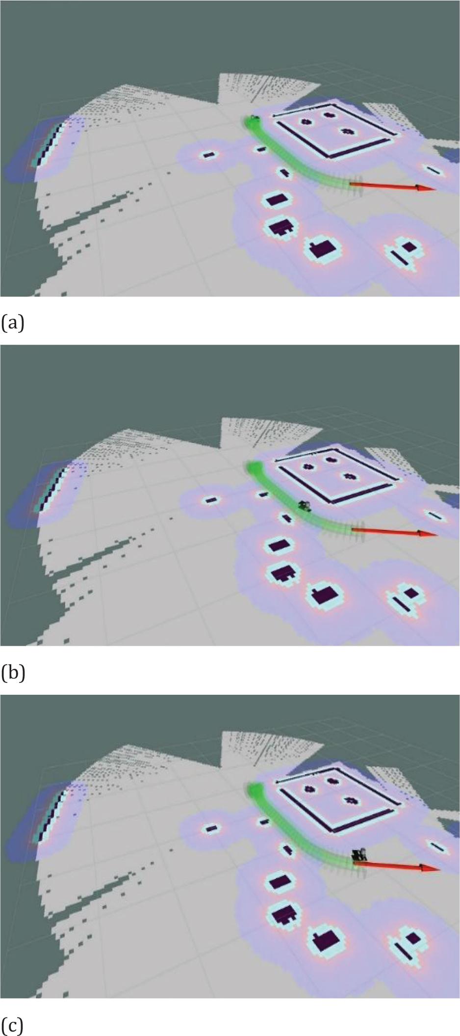 High accuracy localization was critically important for the AMR’s autonomous navigation capabilities. By utilizing the ROS gmapping SLAM package, the AMR was able to localize with high precision, with simulation test results indicating that its error margin remained within a mere 1 cm. However, when conducting real-world testing in complicated and dynamic environments, the error margin was observed to increase up to a maximum of 2 cm. Fig. 7 also displays the high-quality maps that were generated during the Gazebo simulations, portraying the mapping capabilities of the AMR. These capabilities are fundamentally required for successful navigation through the intricate layouts that the AMR encounters. SLAM-generated map from real-world experiments can also be found in Fig 3, highlighting the accuracy of the AMR in mapping environmental data necessary for safe navigation in rapidly changing industrial layouts.