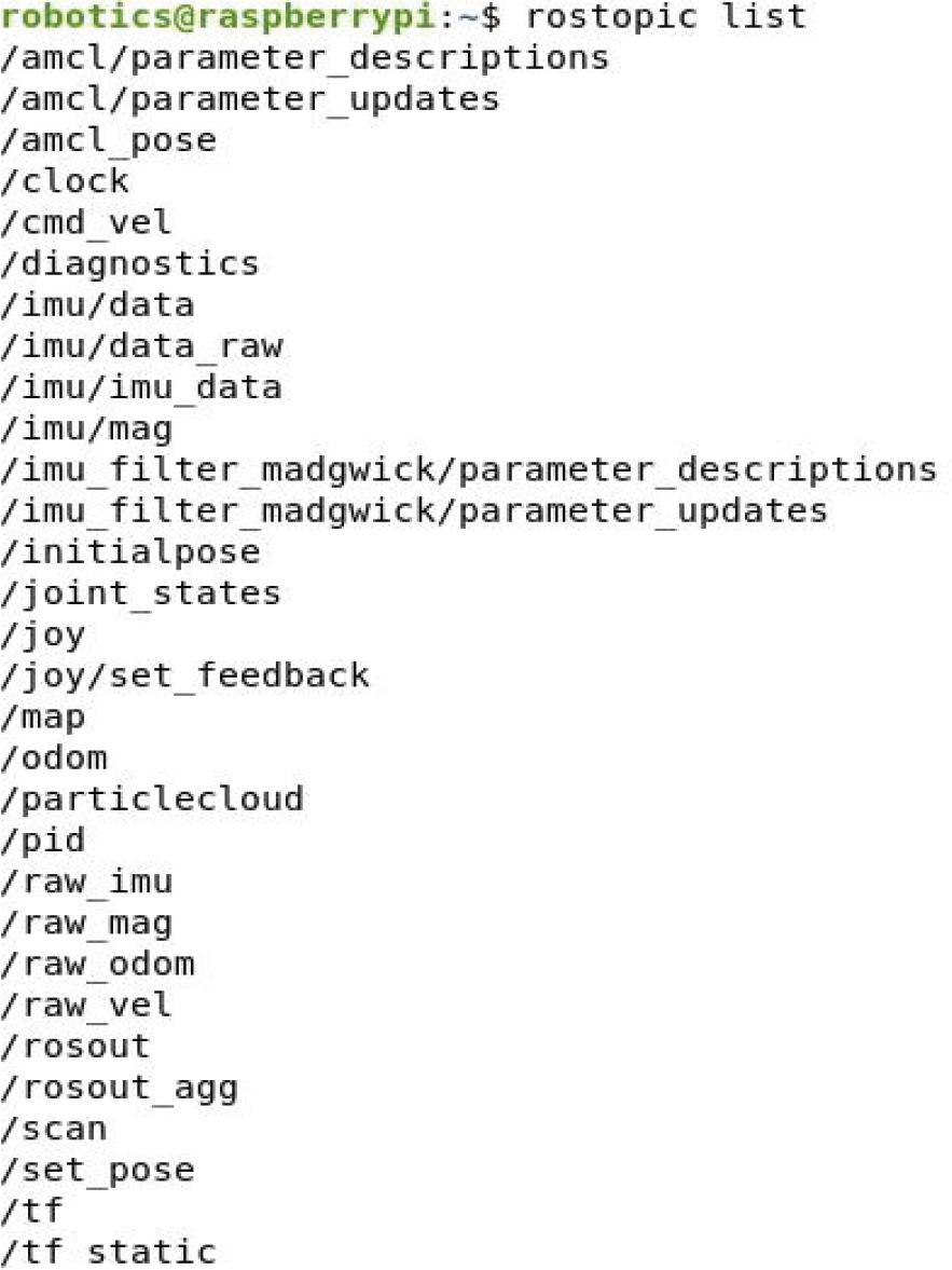 Published and subscribed topics during localization process