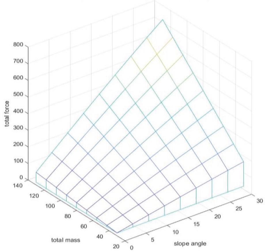 | Slope Angle | Payload and System Mass (kg) | Tractional Force (Ftr) (N) | Total Driving (Fdrv) (N) | Tractional Torque (Tr) (Nm) |