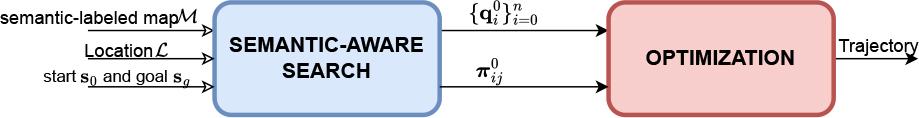 The proposed approach combines a semantic-aware A* initialization, which biases trajectories toward safe and informative regions, with a dynamic-aware optimization that refines the path using separating plane constraints and the MINVO basis while ensuring energy efficiency and dynamic feasibility.