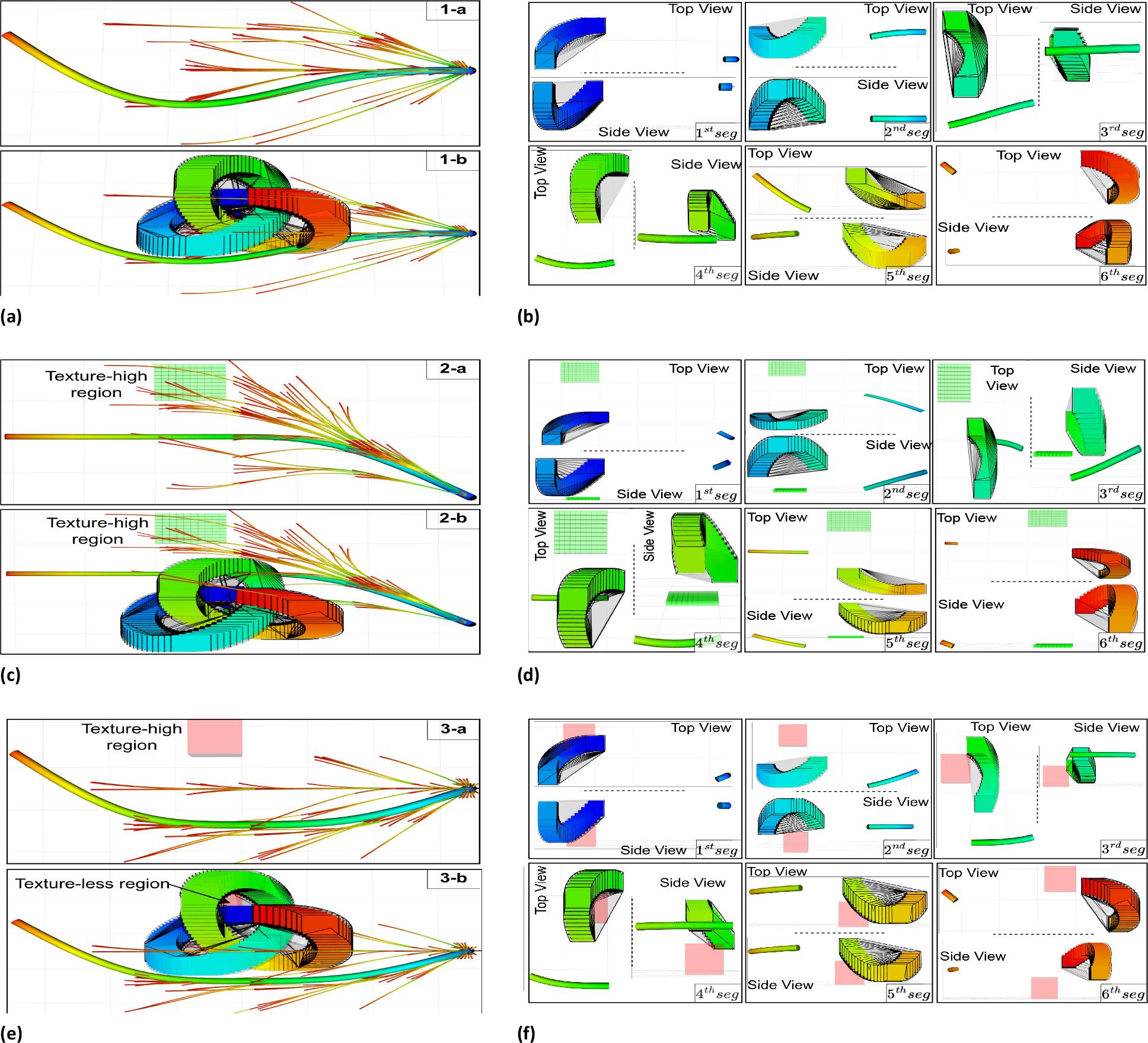 In the first scenario, simulations are conducted by MADER [38] and our suggession (λatt = 2.0), followed by a comparison of the resulting trajectories. The simulation results show that the UAV is capable of navigating safely in a dynamic environment (Fig. 7b), while also exhibiting a tendency to pass through the high-texture region (the dark blue trajectory in Fig. 7c).