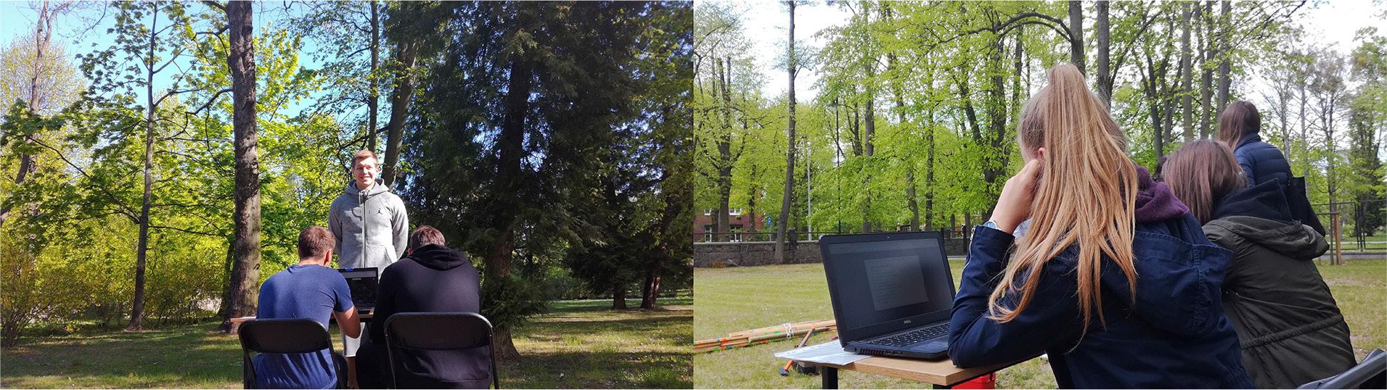The study was conducted in April and May 2019, when the trees had produced leaves. In Poznań, vegetation develops a few weeks earlier than in Gdańsk. For this reason, the survey in Gdańsk was conducted at the beginning of May, about two weeks later than in Poznań. Surveys done indoors were located within university buildings, while outdoor surveys were carried out in parks adjacent to the university buildings where deciduous trees, such as linden, elm, and beech, predominated. The weather at the time of the surveys was moderate, with a temperature of about 20°C (68°F) and no rain (Photo 1). The survey was conducted using desktop computers (indoors) and laptops or tablets (outdoors).