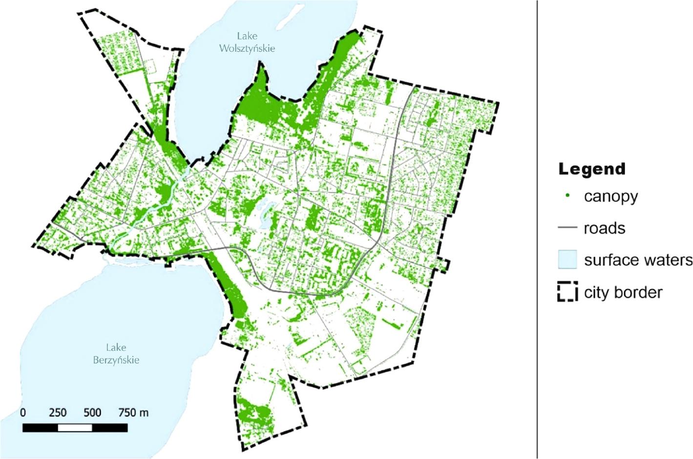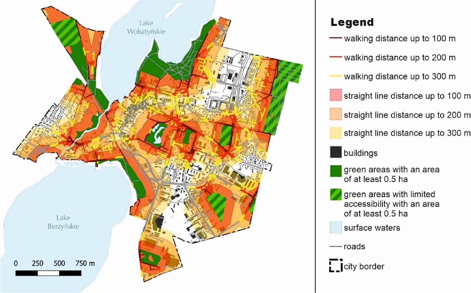 Compatibility of greenery with the 3-30-300 rule in Wolsztyn city_