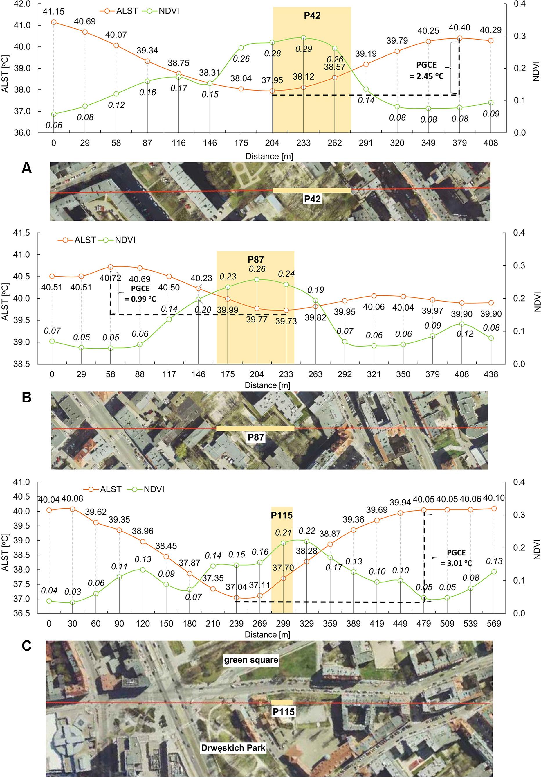 Characteristics of PGs in Poznań due to the PGCE status based on the orthophoto of Poznań (SISP 2021) and Landsat 8 data (EROS 2024)_