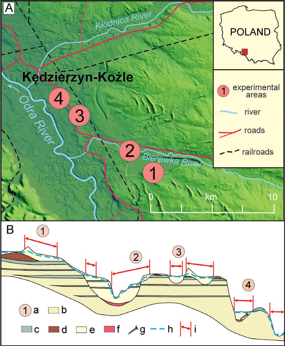 Areas and lengths of the profiles investigated by different geophysical methods_