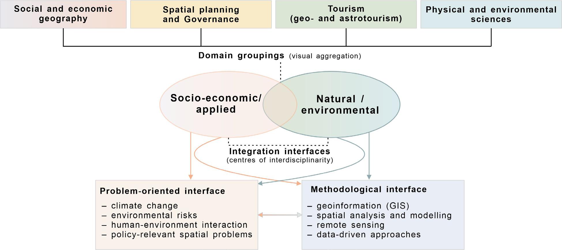 | Interdisciplinary and application-oriented geography | 18 | Anthropocene studies, applied geography, AI in geography, interdisciplinary approaches |