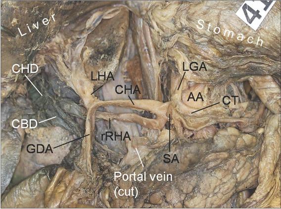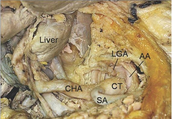 The branching patterns of celiac trunk