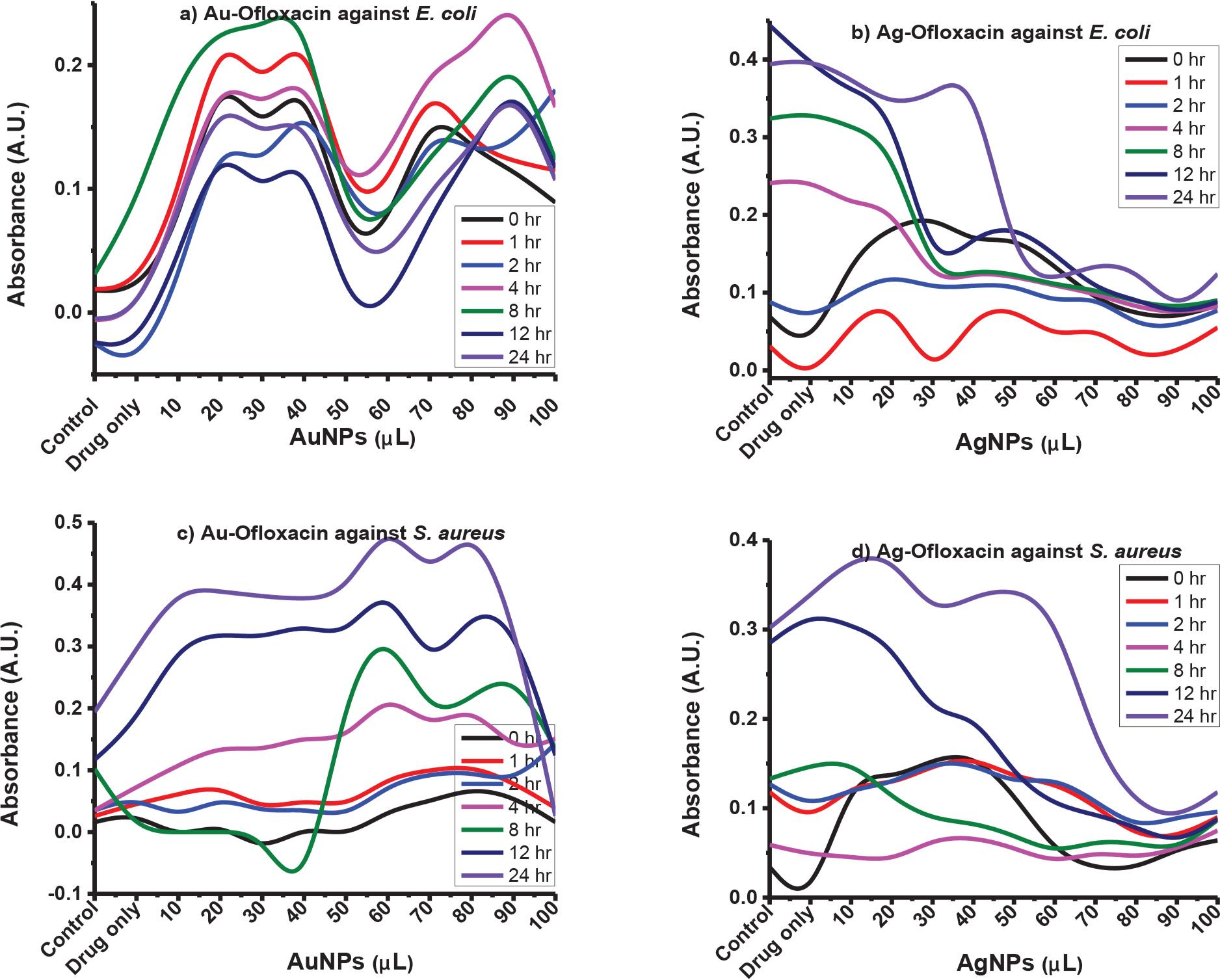 | Fluoroquinolone–NP hybrids | Escherichia coli AgNPs | Escherichia coli AuNPs | Staphylococcus aureus AgNPs | Staphylococcus aureus AuNPs | Conclusion |