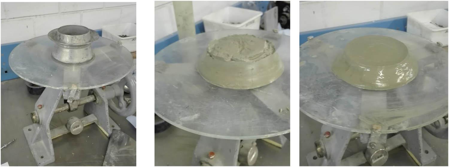 Measurement of flow spread of different cement pastes.
