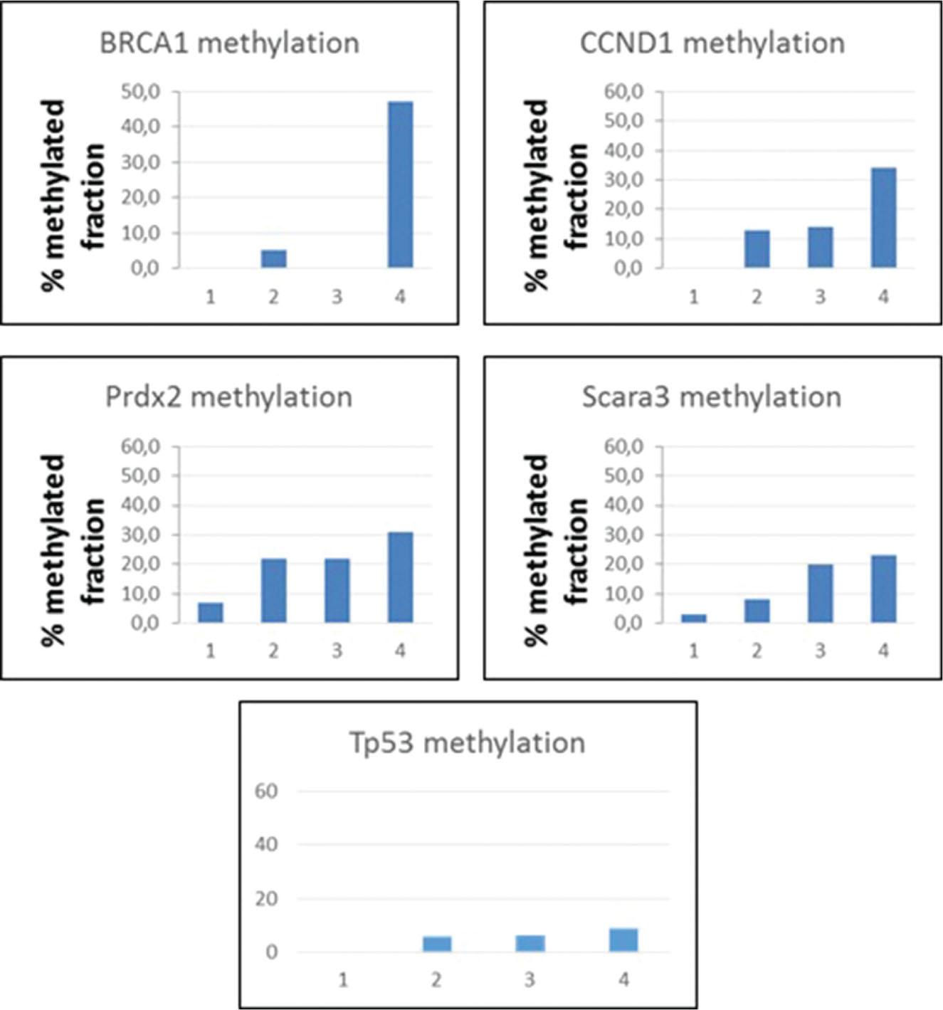 Methylated (M) fraction of the analyzed genes in four DNA pools_