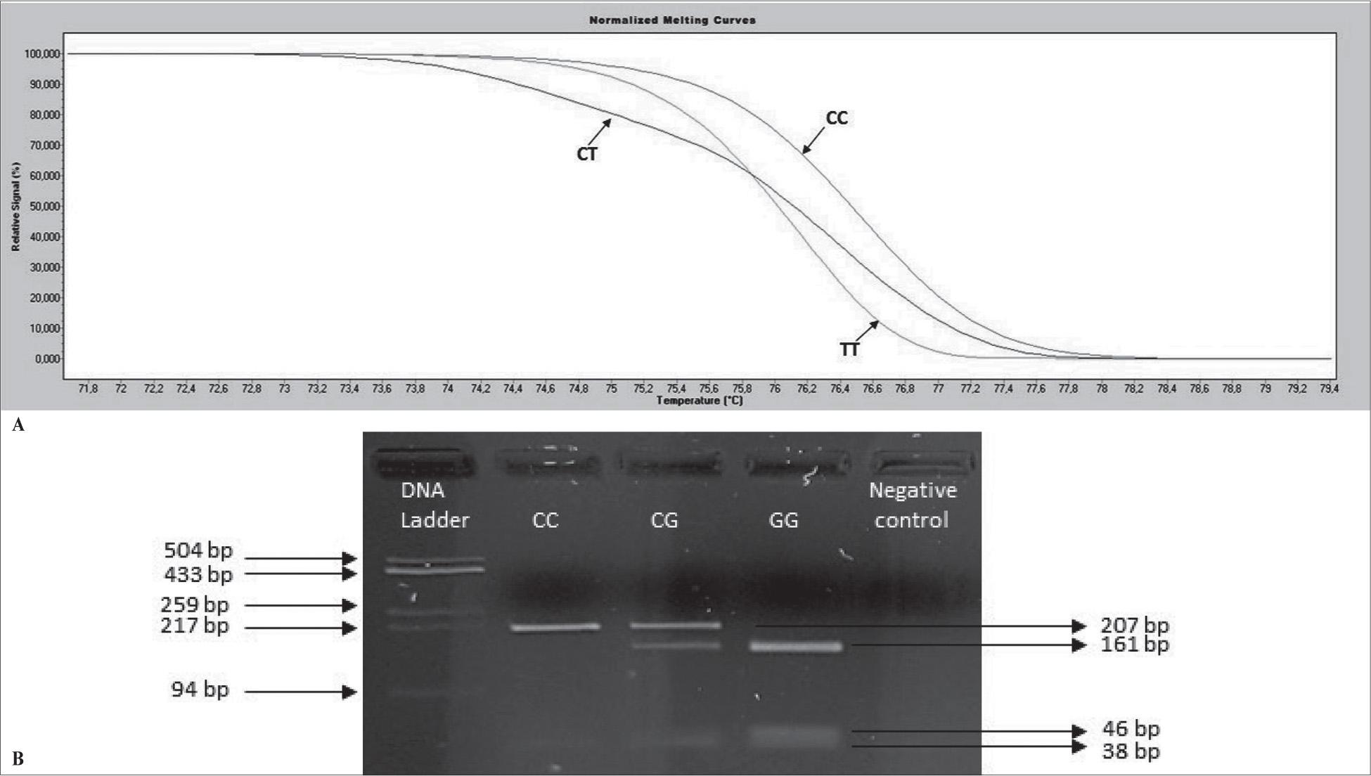 | rs6887695 (IL12B) | F-TTTCAGCGTGAGACCATTCA R-CCCCTAGGTCACAAGCGTAG | 250 | 55 | 245 | HphI | 0.5 | C G | 207+38 161+46+38 |