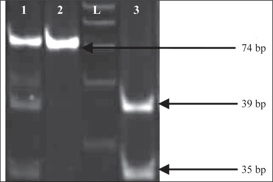 Thirteen percent polyacrylamide gel electrophoresis (PAGE) for PSS genotyping of the digested fragment of interest from the ryr1 gene was done by RFLP using the HhaI restriction enzyme.
