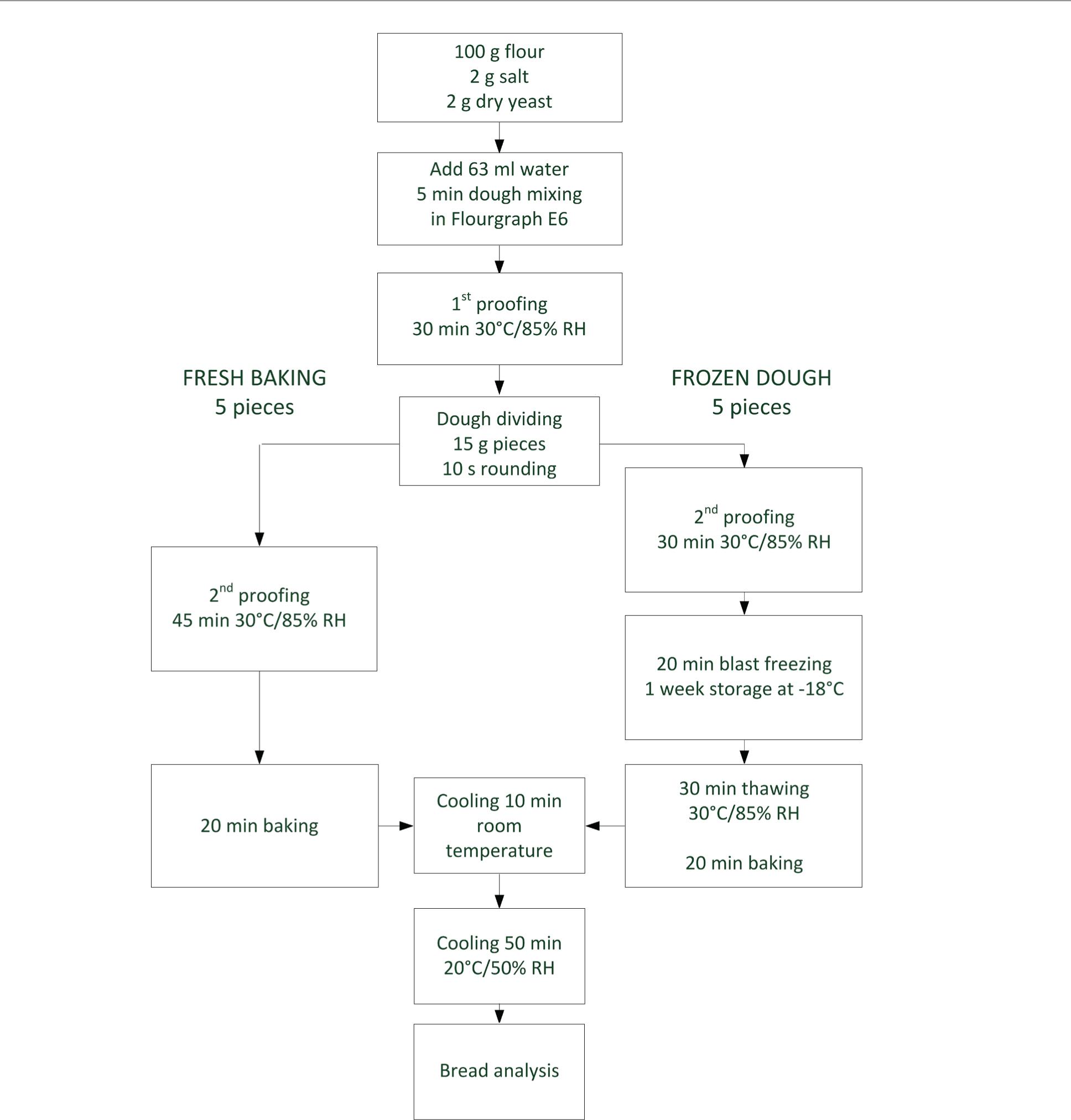 | Parameter | Fresh bread (n = 10) | Frozen dough bread (n = 10) | |||||