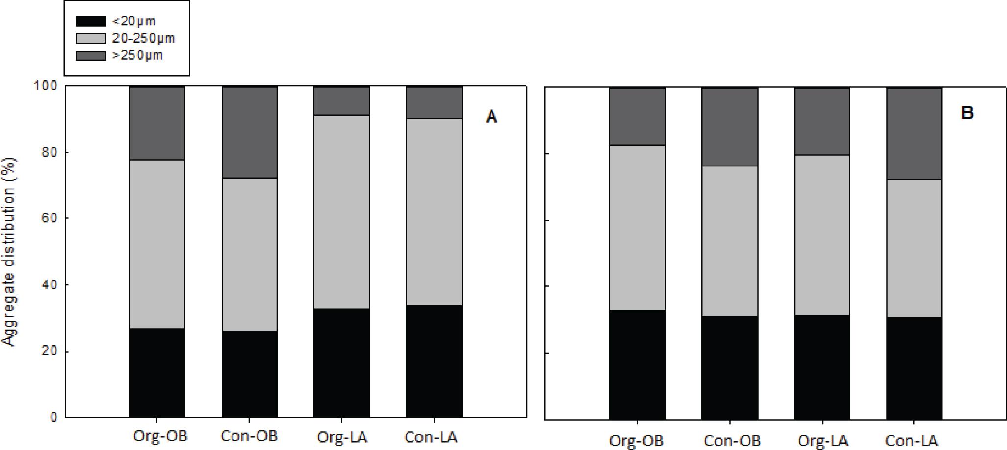 | Depth (cm) | Org-OB | Con-OB | Org-LA | Con-LA | |