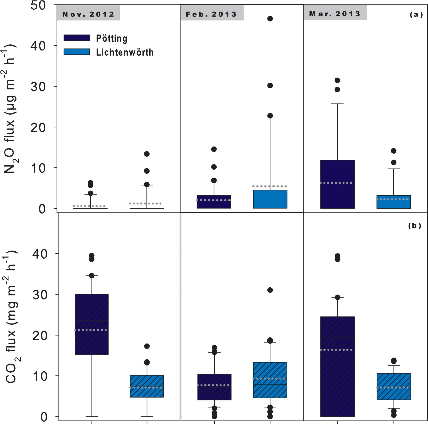 | CO2, N2O | Closed chamber method | 22 November 2012, 1 February 2013, 6 March 2013 |