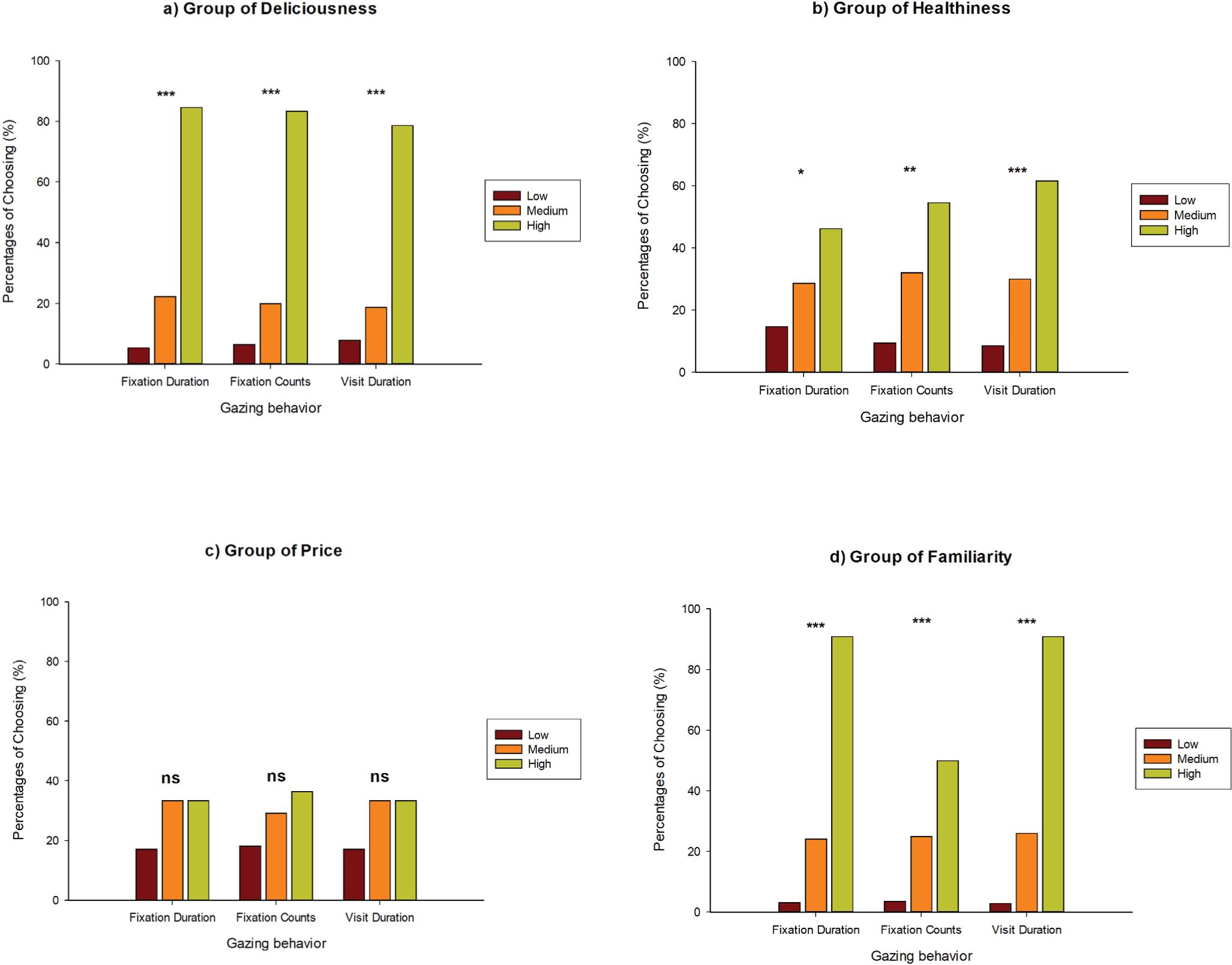 | Gazing parameters | Group of Deliciousness | Group of Healthiness | Group of Price | Group of Familiarity |