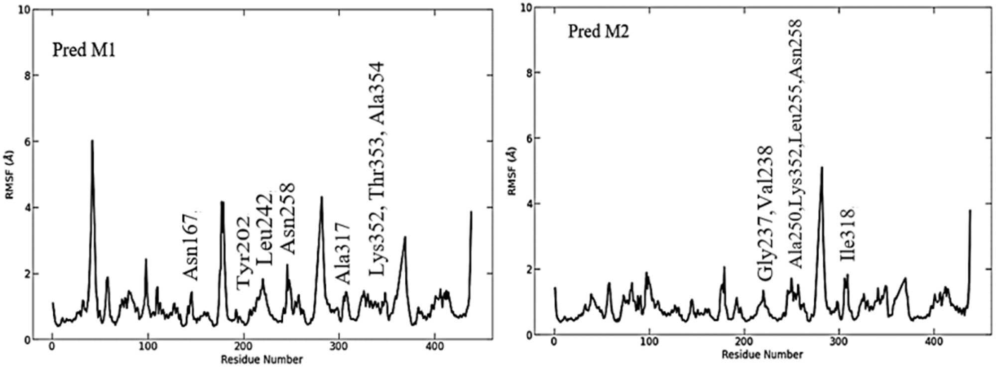 | M1 | Asn167, Asn258, Tyr202, Ala317, Lys352, Thr353, Ala354 | Leu242, Val238, Leu255, Lys254 | Leu252, Ala250, Leu255, Ala354 | 6.53 |