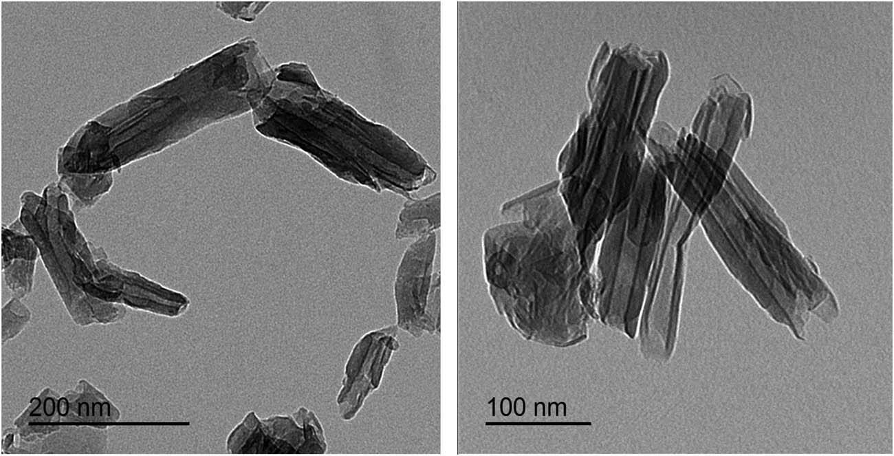 TEM analysis of MM-MDH nanoclay across multiple magnifications.