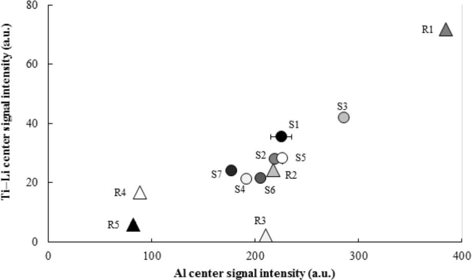 | Sample | Name | Al center signal intensity (a.u.) | Ti–Li center signal intensity (a.u.) |