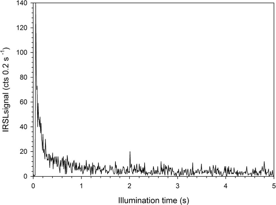 Representative single grain IRSL decay of sample RO1-4.
