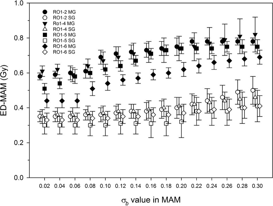 The above mentioned observations call for the appli-cation of the MAM to extract mean De estimate from the grains/aliquots presenting the well-bleached fraction. As there is little experience with samples from the region, a sensitivity test was carried out to investigate the effect of the input value σb (Fig. 11). The MAM was computed using σb values from 0.02 to 0.30, at 0.02 increments. As a matter of fact, the lowest overdispersion reported in the literature for single feldspar grains in natural samples is around 0.15 (Neudorf et al., 2015; Rhodes, 2015) and lower σb values are considered to be likely inappropriate input values for the MAM (presented here only for completeness). On the other hand, Neudorf et al. (2015) interpret overdispersion >0.25 to result from partial bleaching, consistent with the value of 0.27 reported by Gaar et al. (2014) for a well-bleached sample. Hence, we use a value of 0.20 as representative of what is reported in the literature as input for the following MAM calculations. Using the extrema of what appears realistic according to literature (0.15, 0.25) would lead to ca. 8% higher or lower values (ca. ten years difference in age for the samples under consideration). For analyses of the multi-grain data set, we used a σb of 0.10 following the experiments and modelling of Cunningham et al. (2011).