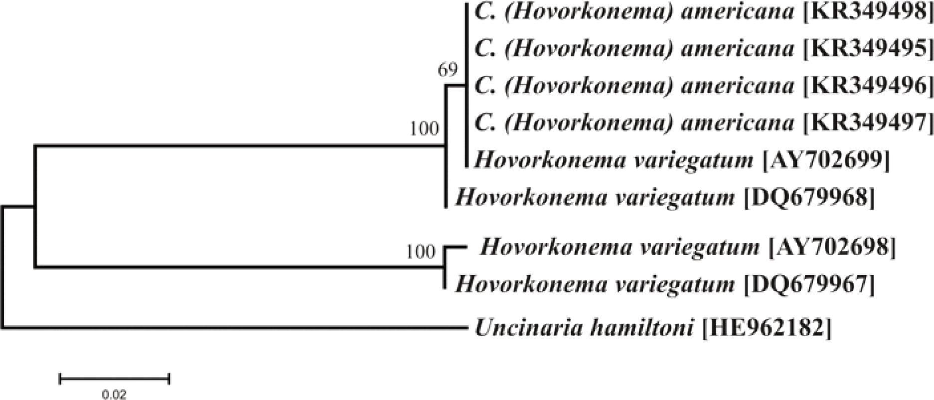 | Species name | C. (Hovorkonema) americana | C. (Hovorkonema) brodskii | C. (Hovorkonema) variegatum | ||||
