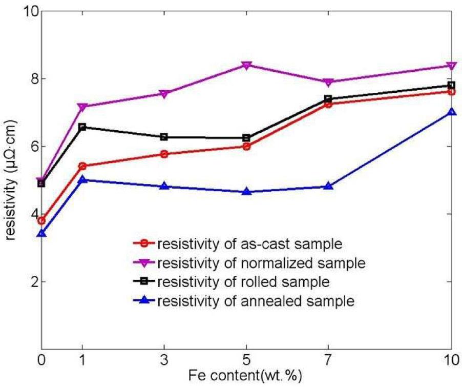 Influence of the Fe content on resistivity of the Cu–3Sn–xFe alloy.