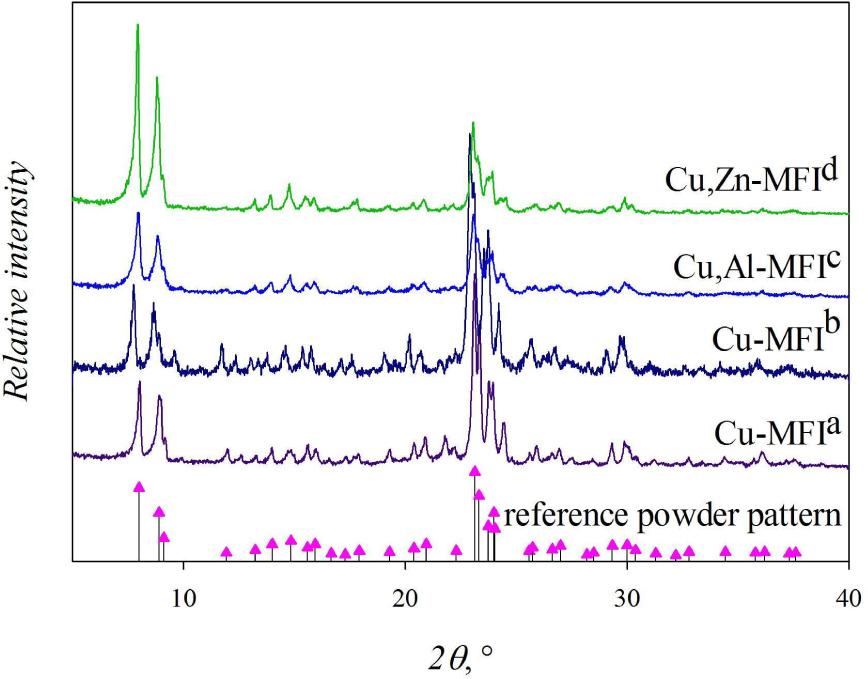| Cu,Al-MFIc | direct hydrothermal synthesis | 40 | 3.65 | 0.56 | 0.160 |