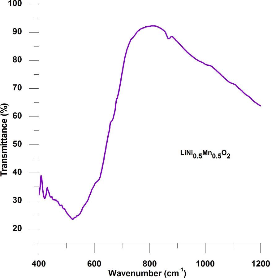 FT-IR graph of LiNi0.5Mn0.5O2 sample.