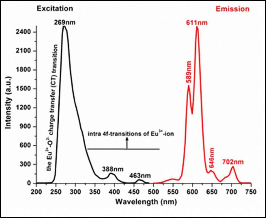 Photoluminescent inorganic phosphors are essentially based on excitation and emission processes. The excited phosphor absorbs energy, then emission takes place by either the host lattice or by impurity ions doped in trace amounts. The emission commonly originates from the impurity ions by exciting with an external energy source. Thus, the emission color can be adjusted by choosing the proper impurity ion, using the same host lattice. Rare-earth (RE) ions are mostly used as impurity ions for phosphors. Extensive research on rare-earth activated phosphors has been carried out because of their important properties, such as luminescent characteristics, thermal stability, environmental friendliness (non-toxic), corrosion-free gas emission, etc. [1, 2]. RE-ions doped materials have attracted considerable attention for a long time due to their significant optical, electronic, chemical characteristics, which are suitable for applications such as solid state lighting (fluorescent or light emitting diodes – LEDs), signs and display devices, radiation dosimetry, X-ray imaging, and sensors; they are also used as other functional compounds [2].