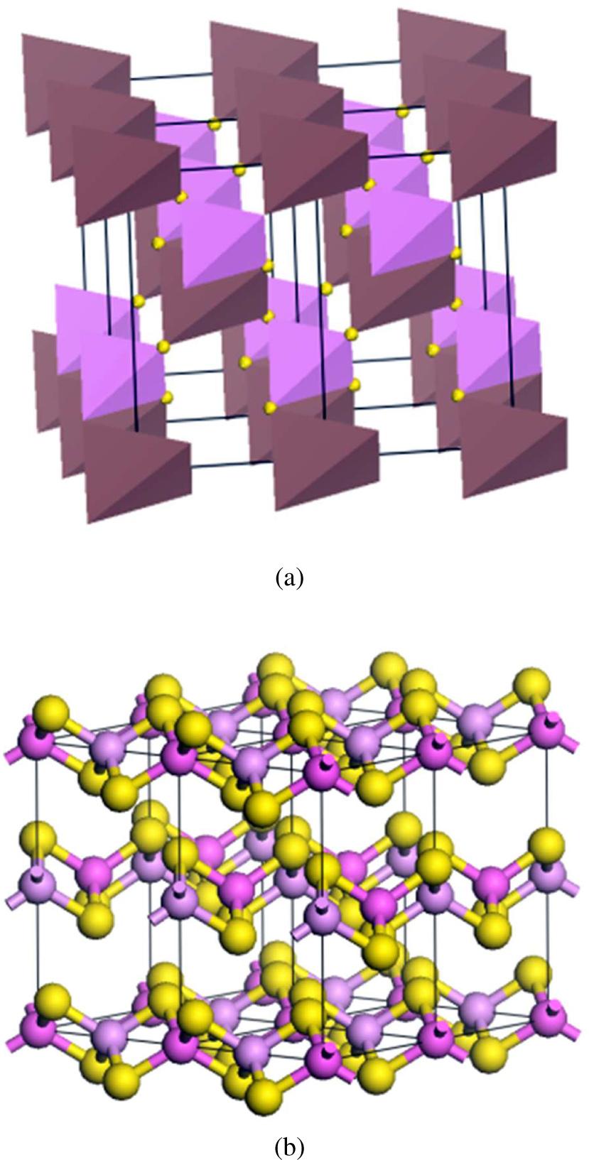 In 1970, the synthesis and growth of small single crystals of InPS4 from vapor phase by iodine transport have been reported [5]. The crystallo-graphic structure was determined by Carpentier et al. [6]. It belongs to the non-centrosymmetric space group I-4 with a = 5.60 Å and c = 9.02 Å. It is a three dimensional structure made of corner-connected [PS4] and [InS4] tetrahedrons (Fig. 1a). Bridenbaugh [7] reported that InPS4 has relatively large nonlinear second order optical coefficients. In 1975, Bubenzer et al. [8] synthesized crystals of InPS4 up to 10 mm using improved vapor growth procedure. They also measured their piezoelectric constants by a non-resonant dynamic method and found that this compound has good coefficients with d36 = 21.0 pC/N. Huard et al. [9] synthesized large InPS4 single crystals with good optical transparency and used Brillouin scattering method to measure their elastic constants. A complete survey of the elastic and optical properties of InPS 4was reported by Jantz et al. [10]. They also evaluated the elastic tensor and found similar results to those reported in the literature [9]. In addition, they reported dispersion curves of the ordinary and extraordinary refraction indices in the entire transparency range of the investigated compound and found a birefringence of the order of 0.04. Furthermore, they measured the second order NLO coefficients and found d31 = 36 pm/V and d36 = 28 pmV. On the other hand, in 1993, Bolcatto et al. [11] used tight-binding method to calculate the electronic structures of the MPS4 (M = B, Al, Ga, and In) thiophosphate family. In 2000, Lavrentyev et al. [12], investigated both experimentally and theoretically X-ray absorption near edge structure (XANES) of K-absorption spectra of P and S atoms in InPS4 and in 2003 they focused their research on the electronic structure and chemical bonding in InPS4 compound together with Tl3PS 4and Sn2P2S6 [13]. They presented the partial electronic density of states from the experimental measurements using X-ray spectroscopy and theoretical quantum mechanical calculations, using abinitio multiple scattering FEFF8 code. The same group in 2006 presented their results on the influence of pressure on the birefringence of ZnS, CuGaS2 and InPS4 compounds using the modified method of augmented plane waves and the code WIEN2k [14]. As far as AlPS4 is concerned, no experimental or theoretical study has been reported except its crystal structure [11]. This study revealed that this compound crystallizes in the orthorhombic non-centrosymmetric space group P222 with the following cell parameters: a = 5.61 Å, b = 5.67 Å, c = 9.05 Å. AlPS4 crystal structure consists of edge-connected [AlS4] and [PS4] forming helicoidal chains along x and y axis as shown Fig. 1b. These chains are linked together by week Van der Waals interactions.